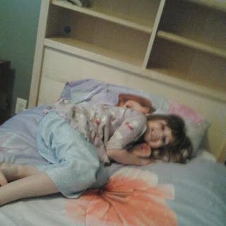 She asks me to come up to snuggle with her in her new bed. She never slows down during the day (is she sick?).